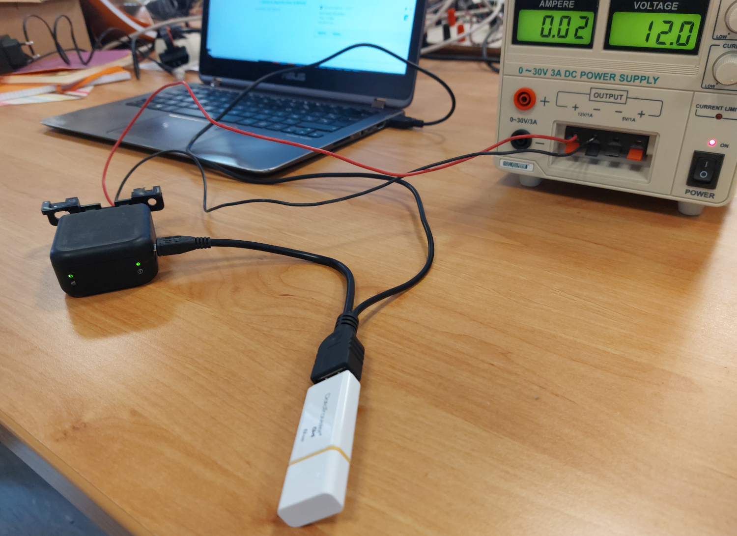 - Turn the device ON (plug it to car or to a Laboratory Power Supply),